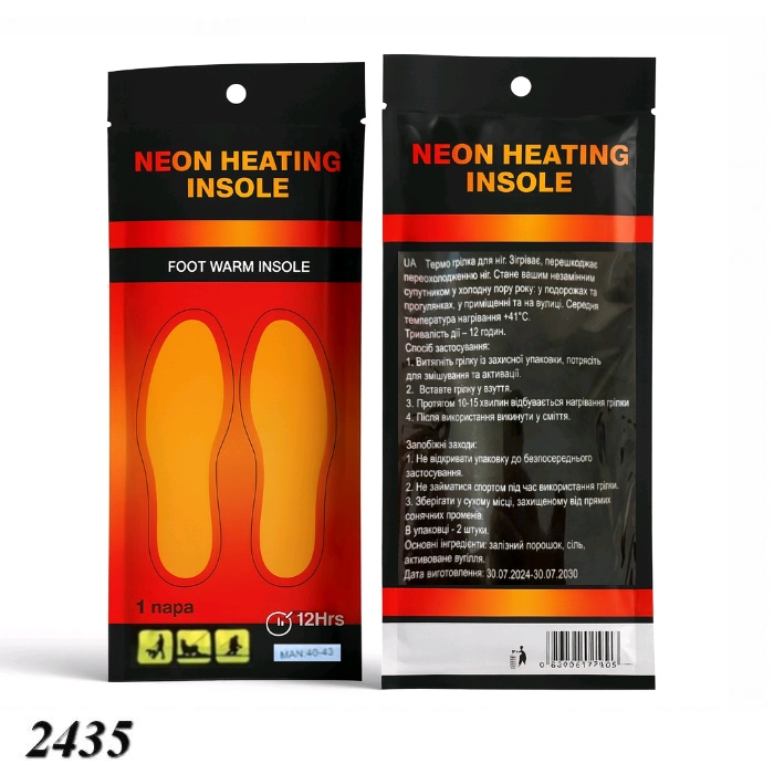 Хімічні термоустілки мають розмір 40-43. Це одноразові хімічні устілки для ніг із підігрівом (до 12 годин тепла)