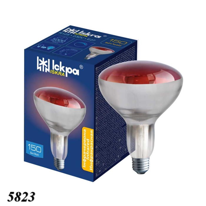 Інфрачервона дзеркальна лампа для обігріву червона R125 150W E27 ТМ "Іскра" - призначена для тваринництва та птахівництва.