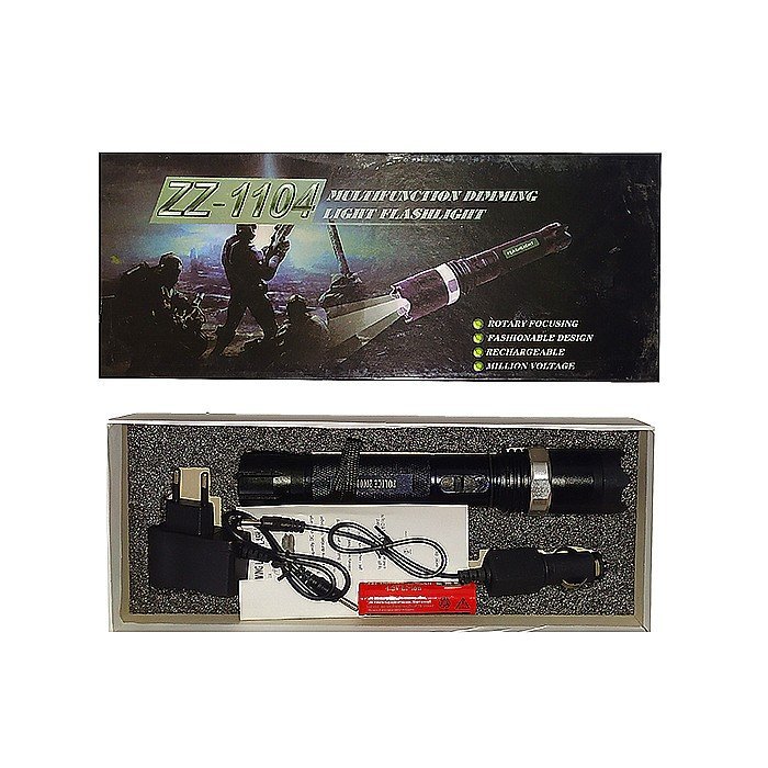 Комплектація: ліхтар-шокер з акумулятором, адаптер для зарядки від 220В, зарядний пристрій від прикурювача автомобіля 12V, чохол, інструкція