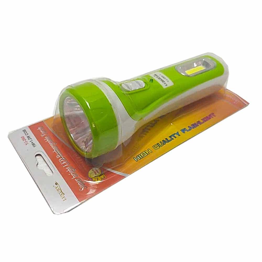 Ручний компактний ліхтарик, має освітлення LED діодне, що характеризується енергозберігаючим ефектом і яскравим світлом. Корпус такого ліхтарика виготовлений з міцного і стійкого до падінь пластику і гуми, форма зручна для повного охоплення рукою. З таким ліхтариком темрява - не перешкода в будь-якій життєвій ситуації!