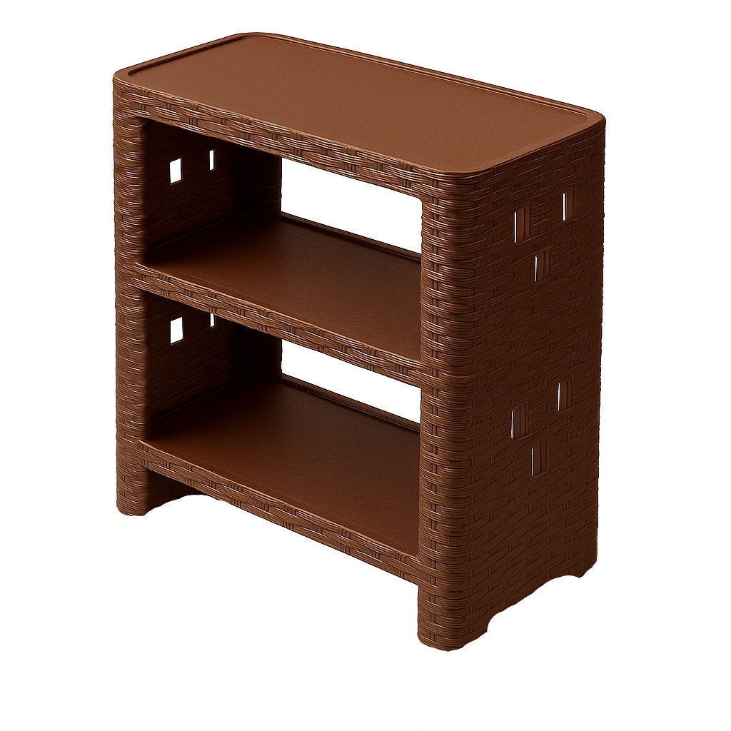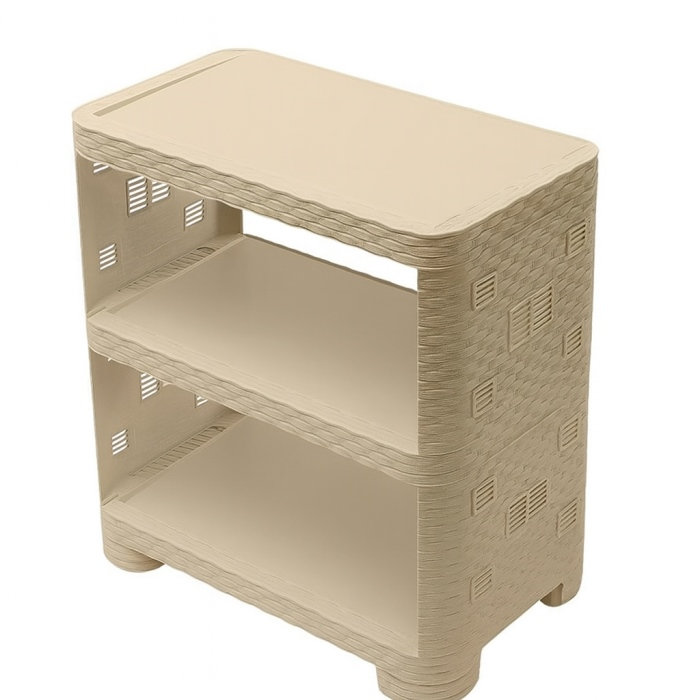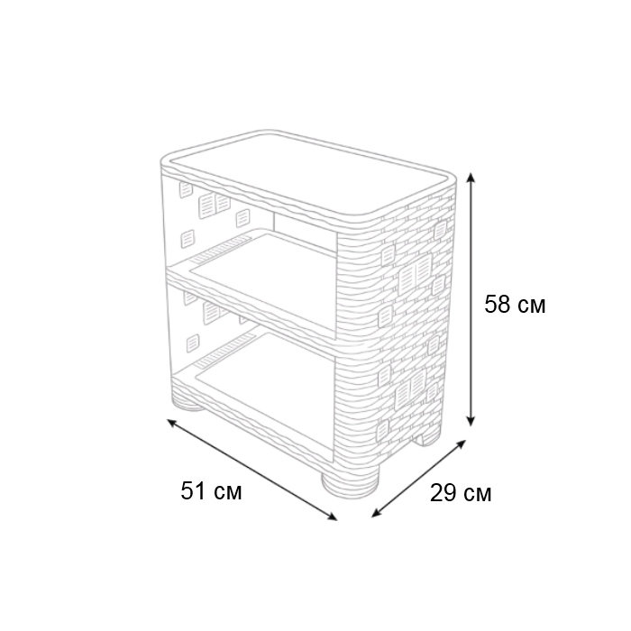Етажерка Ротанг ПГ 3 секції 51×29×58 см — компактна та практична пластикова етажерка з дизайном під ротанг, призначена для організації простору у квартирі, на кухні, у ванній, на балконі чи на дачі. Три просторі секції дозволяють акуратно розмістити побутові дрібниці, рушники, продукти, засоби для прибирання або дитячі іграшки. Завдяки розмірам 51×29×58 см займає мінімум місця, але забезпечує достатньо місця для зберігання. Легка, вологостійка та проста у догляді, відмінно впишеться у будь-який інтер’єр.