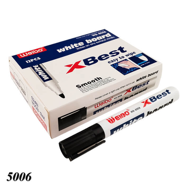 Якісний маркер для білих магнітно-маркерних дошок від бренду Weibo з лінією письма приблизно 2,5 мм. Чорне насичене чорнило швидко висихає, не розмазується та легко стирається сухою губкою або серветкою.