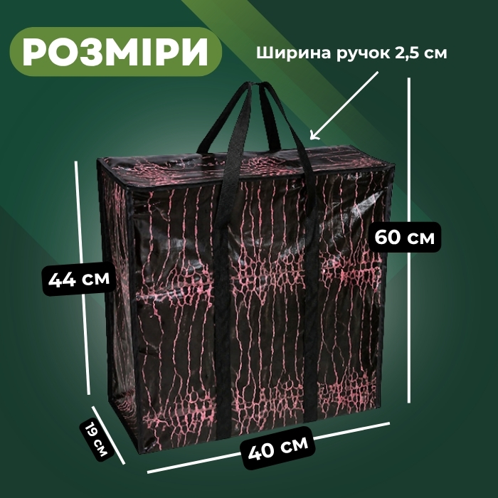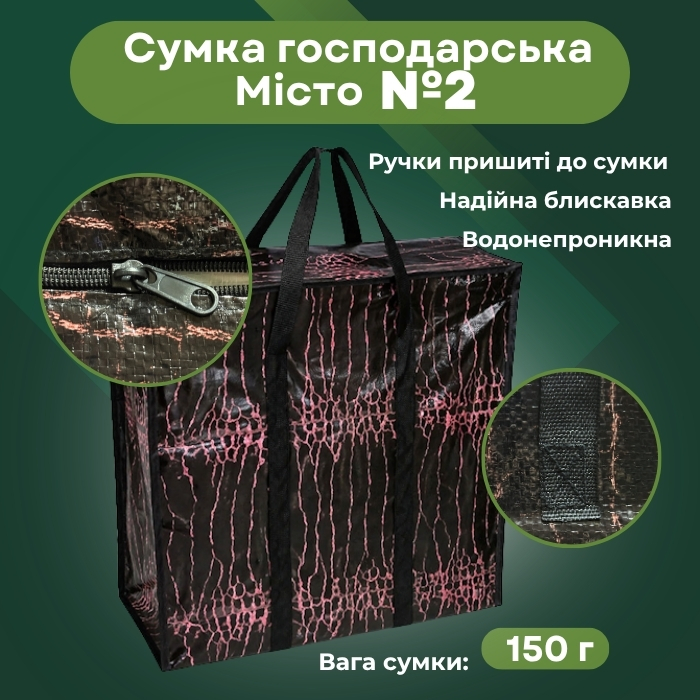 Поліпропілен, з якого виготовлена сумка, розрахований на тривалий термін служби навіть при інтенсивному використанні. Вшита блискавка допоможе захистити вміст сумки від пилу та бруду.