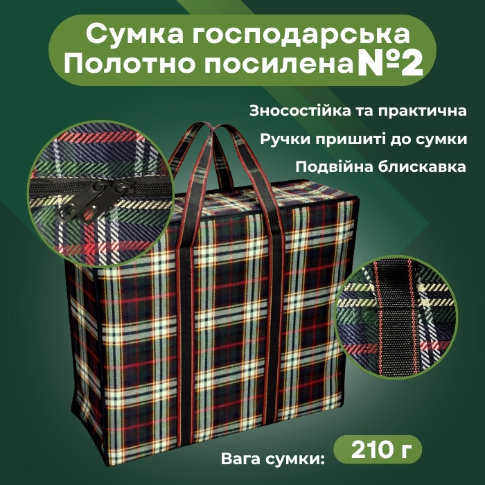 Господарська сумка використовується для регулярного перенесення великої кількості важких товарів, а також для зберігання вдома різних речей (старий одяг, іграшки тощо) або інвентарю.