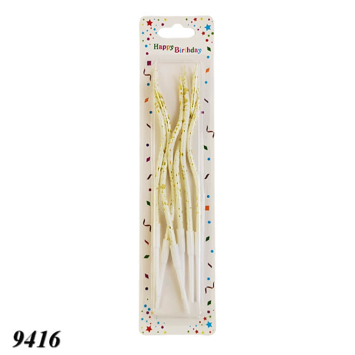 Спіральна форма робить свічки ще більш привабливими та оригінальними. Виготовлені з безпечного парафіну, вони мають стійке полум’я, не коптять і горять рівно. Пластикові тримачі дозволяють легко встановлювати свічки на торт.