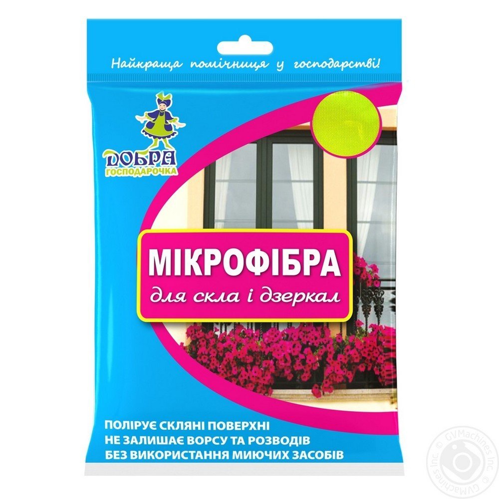 Серветка з мікрофібри "Добра Господиня" - текстура тканини м’яка і вологовбиральна, мікрофібра шовковиста і оксамитова, легка у використанні, не залишає розводів та ворсу. Відмінно підійде для всіх скляних поверхонь без використання миючих засобів. Після закінчення прибирання її достатньо ополоснути під струменем води, висушити і використовувати повторно протягом кількох місяців!