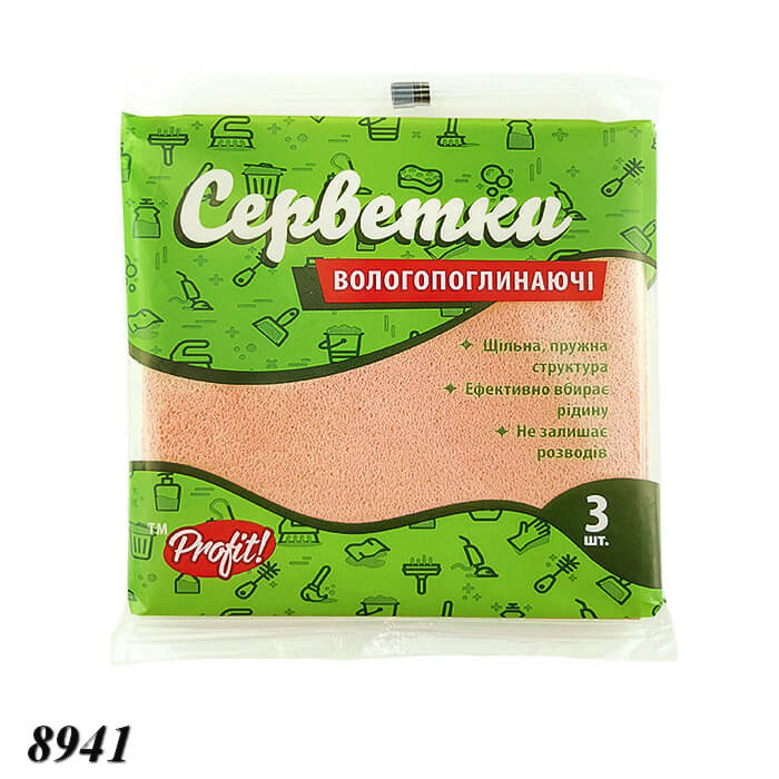 Серветка целюлозна Profit, 3 шт — набір багатофункціональних целюлозних серветок для вологого та сухого прибирання. Виготовлені з натуральної целюлози, завдяки чому чудово вбирають вологу, не залишають розводів та легко відмивають навіть стійкі забруднення. Ідеально підходять для кухні, ванної, протирання меблів, скла чи сантехніки. М'які та приємні на дотик, не дряпають поверхні. У комплекті 3 серветки, чого вистачить на тривале використання для різних господарських потреб.
