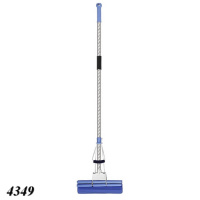 Швабра з подвійним віджиманням і металевою основою, має цільну виту ручку.