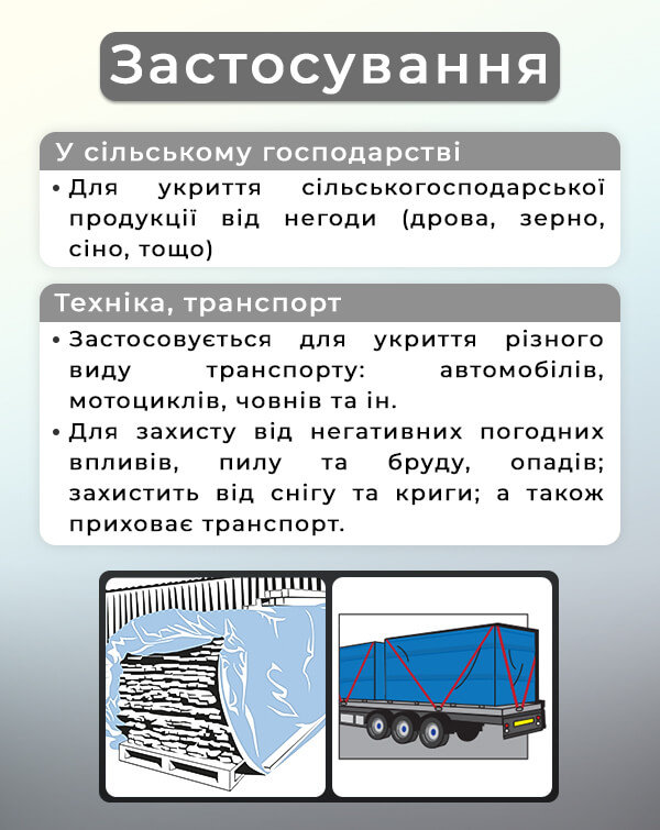 Тент сірого кольору X-Treme виготовлений із міцного поліпропілену, стійкого до ультрафіолету, сильних поривів вітру та опадів. Має вигляд прямокутного полотна з металевими кільцями по всьому периметру, а краї посилені пластиковими накладками для міцності кріплення.Використовується як для домашніх потреб, так і на різних промислових підприємствах для укриття транспорту, причепів, вантажів, будівельних ділянок.Крім того, він стане в нагоді на полюванні та риболовлі, а також в подорожах.