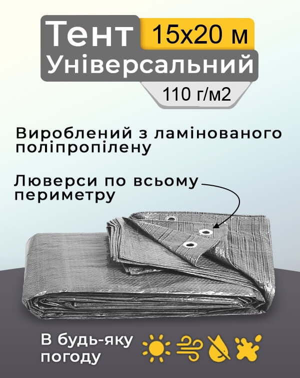Тент універсальний 15х20 м 110 г/м2 Сірий (1485)