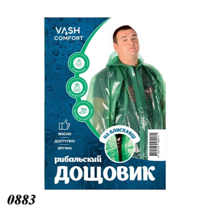 Дощовик виготовлений з міцного водонепроникного матеріалу щільністю 100 мкм.