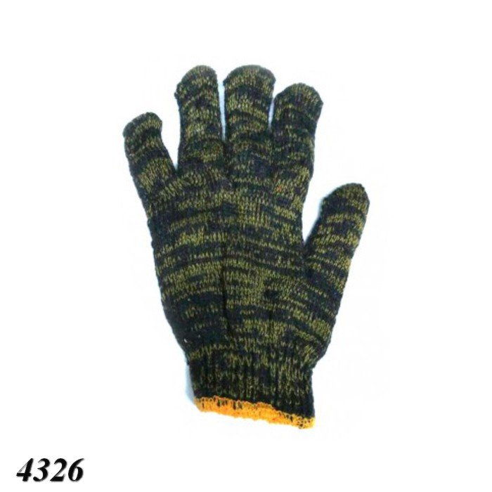 Рукавички трикотажні з натуральної бавовняної нитки чорно-жовтого кольору, вважаються товаром багаторазового використання.