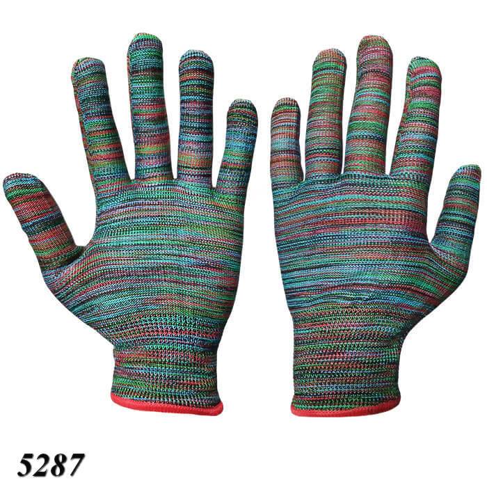 Робочі рукавиці в’язані натуральною бавовняною ниткою різних відтінків.