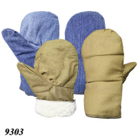 Рукавиця двошарова: один шар - джинсова/хаки щільна тканина, а другий - хутряна вставка.