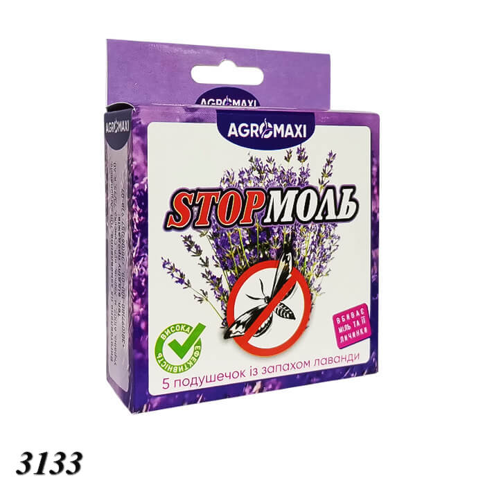 Ефективний препарат від молі у вигляді подушечок. Вони створюють приємний запах, який не тільки освіжає, але й служить відмінною профілактикою проти молі, оскільки комах відштовхує аромат лаванди, у результаті чого вони оминають оброблені цим запахом зони.