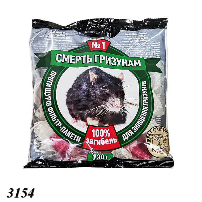 Представленмй у формі тістоподібної суміші, готовий до застосування з метою захисту житлових, виробничих, складських, дачних приміщень, а також льохів та підвалів від щурів, мишей та інших гризунів. Його склад включає бродіфакум, муміфікатор, барвник та ароматизатор, який приваблює гризунів. Після прийому смертельної дози препарату шкідник зіткнеться з проблемами згортання крові, що призведе до внутрішньої кровотечі та її загибелі протягом 3-7 днів. Для збереження ефективності приманки рекомендується уникати контакту з нею голими руками через ризик відлякування гризунів людським запахом.