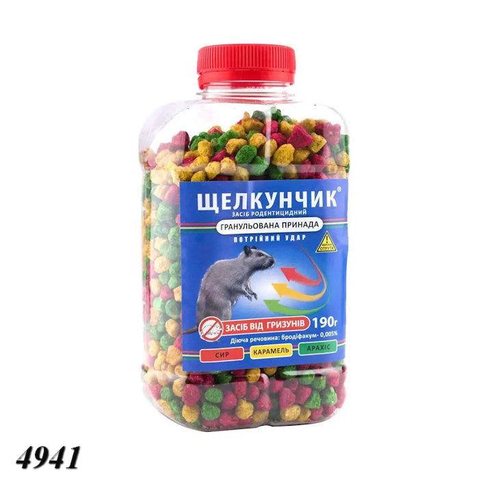 Родентицидний засіб "Щелкунчик" у вигляді екструзійних гранул діаметром від 5 мм використовується для знищення щурів та мишей, для дератизації на об'єктах різних категорій та в умовах побуту як готова приманка. Механізм дії засобу складається із властивостей діючої речовини. Воно є антикоагулянтом, який при попаданні в організм шкідника порушує утворення вітаміну К1, який відповідає за утворення білків протромбінового комплексу. Через 1-2 дні після вживання летальної дози приманки, рівень згортання крові у гризунів різко сповільнюється, що призводить до кровотеч як внутрішніх, так і зовнішніх. Загибель настає через 3-7 діб. Засіб діє навіть у разі резистентності гризунів до інших приманок.