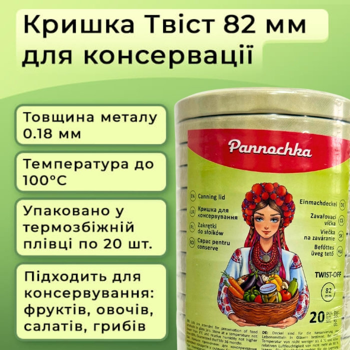 Металеві ЄВРО кришки «Панночка» Пташиний двір діаметром 82 мм — виготовлені зі сталі з полімерним внутрішнім покриттям (харчова емаль), що забезпечує захист продуктів від контакту з металом та продовжує термін зберігання. Тип закручування – «твіст-оф», що дозволяє герметично закривати банки вручну без додаткових інструментів. Ідеально підходять як для побутової консервації, так і для промислового пакування в оптових обсягах.Кришка витримує температуру до 100 °C.