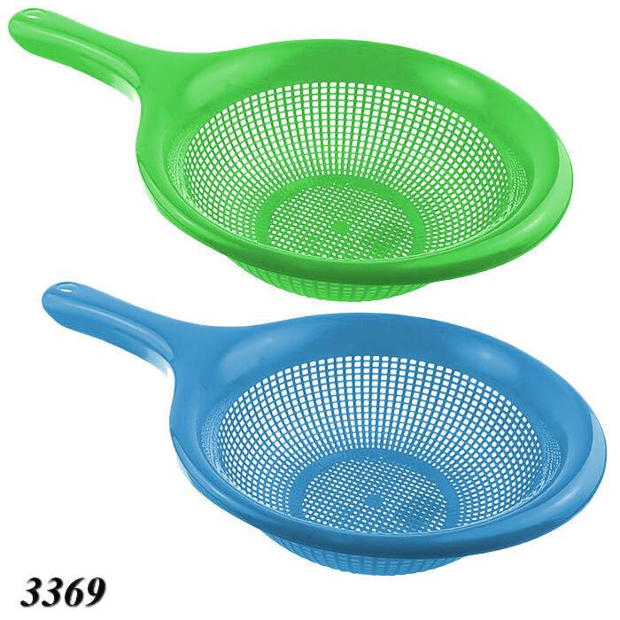 Зручний пластиковий друшляк із ручкою, представлений у яскравих кольорах, — практичний аксесуар для щоденного використання на кухні. Ідеально підходить для промивання овочів, фруктів, ягід, макаронів, круп або відціджування рідин.
