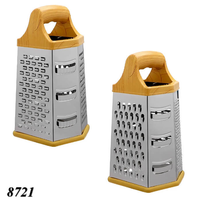 Терка металева шестигранна з пластиковою ручкою призначена для подрібнення овочів, фруктів, сиру, шоколаду та інших продуктів. Має шість робочих поверхонь з різними типами отворів для різного ступеня натирання та нарізки. Пластикова ручка забезпечує зручне та безпечне тримання під час роботи. Міцна й довговічна, підходить для щоденного використання на кухні.