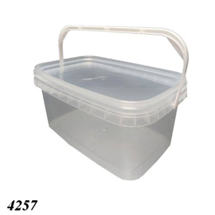 Харчове контейнерне відро прямокутної форми - виготовлено з харчового прозорого поліпропілену, розраховано на 3 л, з кришкою на заклепках для герметизації і зручною пластмасовою ручкою для транспортування.