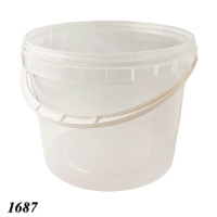 Харчове контейнерне відро круглої форми - виготовлено з харчового поліпропілену прозорого кольору, розраховано на 5 л, з кришкою на заклепках для герметизації і зручною пластмасовою ручкою для транспортування.