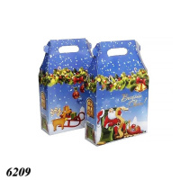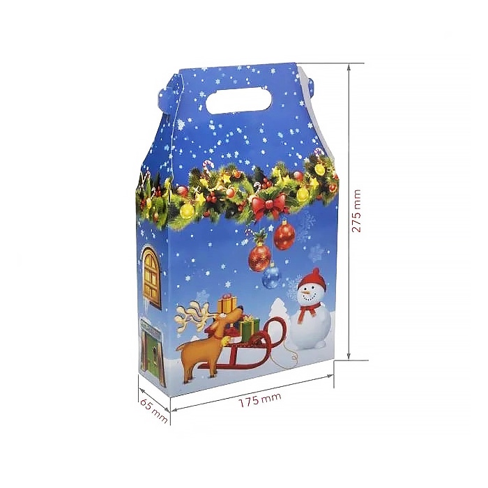 Новорічна подарункова коробка "Будиночок великий синій" 700 г — містка та яскрава святкова упаковка у формі будиночка. Виконана з міцного картону у синіх тонах з барвистим зимовим дизайном, що створює атмосферу затишку та свята. Ідеально підходить для солодощів, печива та невеликих подарунків на Різдво і Новий рік.