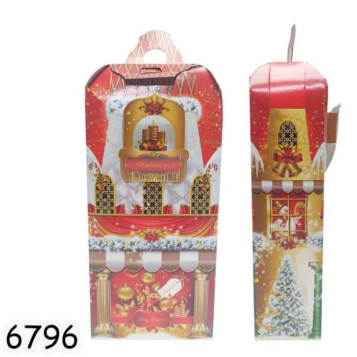 Ця новорічна коробка має витягнуту форму з ручкою, ідеально підходить для солодощів або подарунків. На коробці зображена святкова сцена з новорічними прикрасами, золотим годинником та ялинковими іграшками. Яскраві кольори та святковий орнамент створюють чарівний новорічний настрій. Вміщує до 1000 г солодощів.