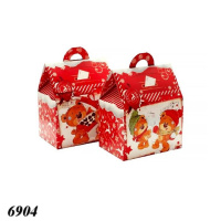 Ця коробка у вигляді будиночка з червоним фоном та зображенням ведмежат і сніжинок створює теплий новорічний настрій. Вміщує до 1300 г солодощів.