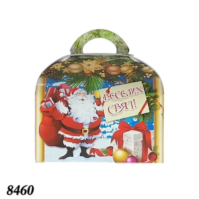 Подарункова новорічна коробка «Скринька з годинником» об’ємом 500 г — елегантна упаковка для солодощів, пряників чи невеликих сувенірів. Форма витонченої скриньки з декоративним годинниковим циферблатом на кришці створює відчуття святкової розкоші й нетривіального дизайну.