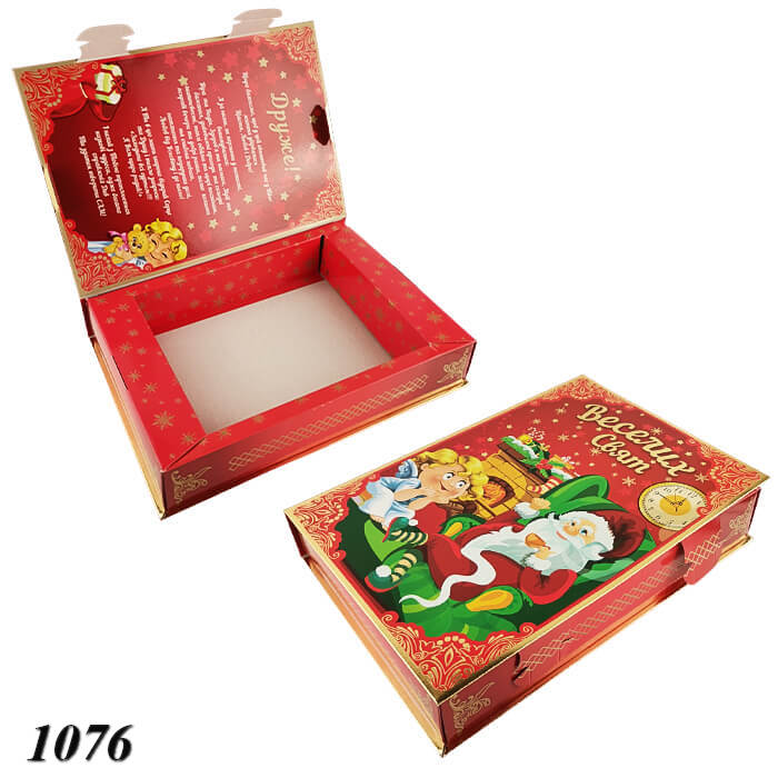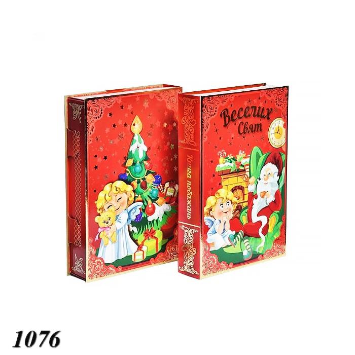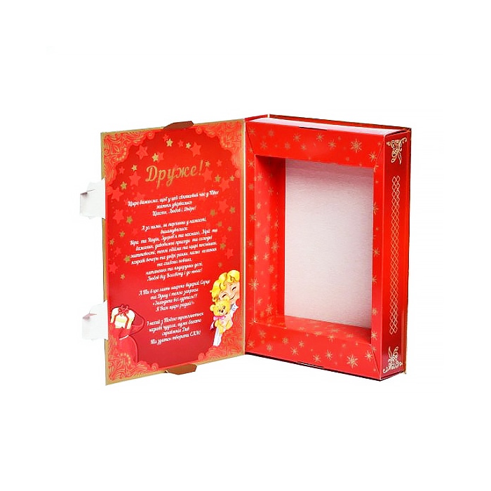 Новорічна коробка «Книга» з тисненням 800 г — стильна подарункова упаковка у вигляді книги з об’ємним тисненням і яскравими святковими малюнками. Ідеально підходить для формування новорічних та різдвяних наборів солодощів, сувенірів або інших приємних сюрпризів. Міцний картон забезпечує надійність під час транспортування і зберігання, а оригінальний дизайн створює атмосферу свята та робить подарунок ще особливішим. Розрахована на наповнення приблизно до 800 г.