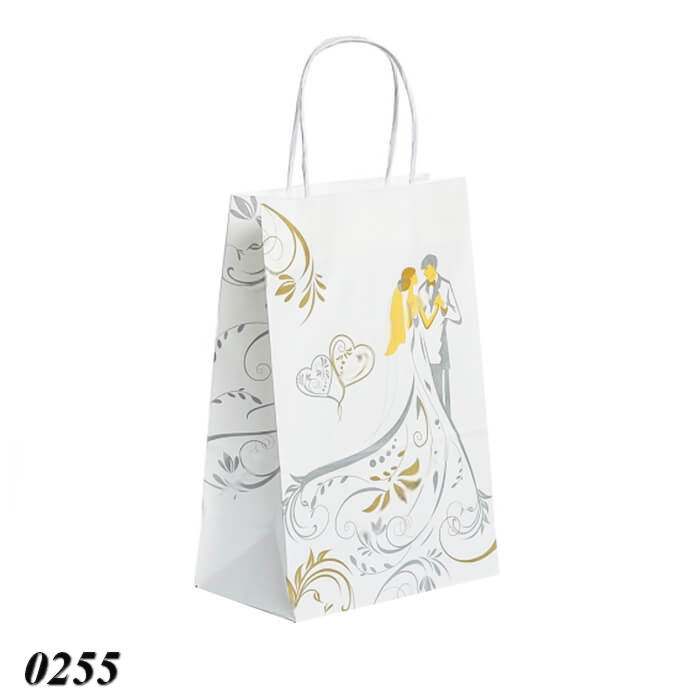 Крафтовий пакет з тематичним весільним принтом використовують для пакування короваю, торта, солодощів