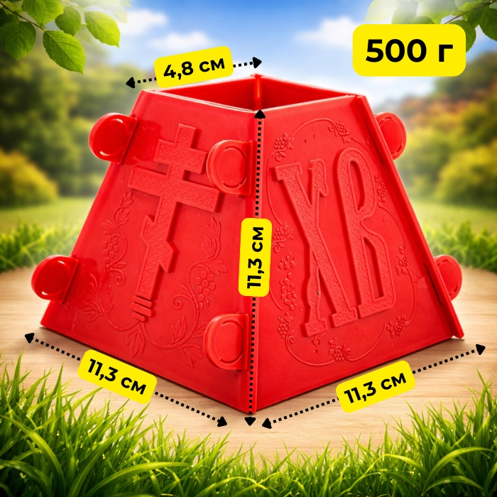 Внутрішні стінки форми мають красиве рельєфне зображення з написом «ХВ» («Христос Воскрес!») та хрестом, тому ваша паска вже матиме чудове оформлення.