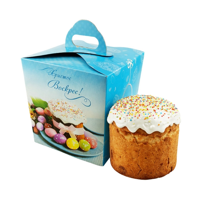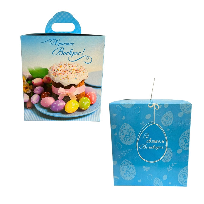 Коробка для паски синя 16×16×18 см — красива картонна упаковка для великодніх пасок, кексів, мафінів чи інших святкових виробів. Виконана з якісного щільного картону, що добре тримає форму та захищає випічку при транспортуванні. Має зручні клапани для швидкого складання і ручку для перенесення. Елегантний синій дизайн з декоративними елементами додає святкового настрою та робить упаковку чудовим вибором для подарунку на Великдень. Ідеально підходить для домашньої випічки та кондитерських.