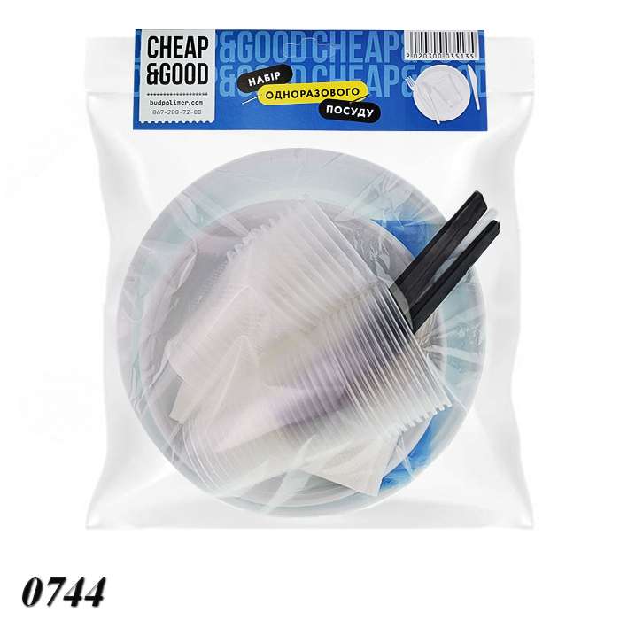 Набір одноразового посуду CHEAP&GOOD на 10 персон — зручне рішення для свят, пікніків, фуршетів або корпоративів. Посуд виготовлений з якісного харчового пластику, не деформується при контакті з гарячими стравами, безпечний та легкий. Після використання не потребує миття — просто утилізується. Ідеально підходить для швидкої сервіровки на природі або в офісі. Виріб виготовлений відповідно до вимог ДСТУ з дотриманням усіх стандартів якості та повністю відповідає санітарно‑гігієнічним нормам для контакту з харчовими продуктами.