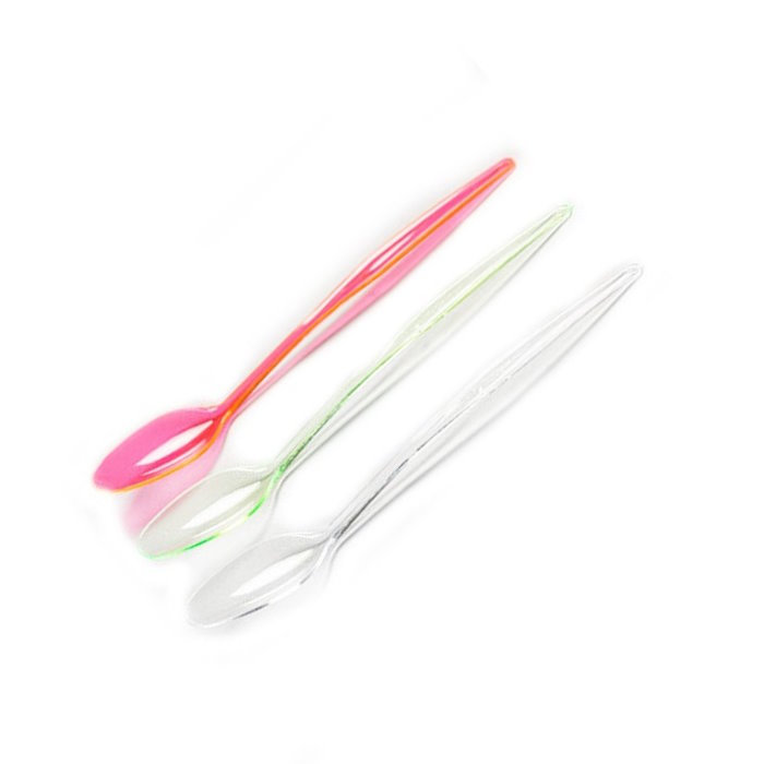 Коктейльна ложка кольорова довжиною 178 мм виготовлена з харчового прозорого полістиролу високої міцності, що гарантує безпечний контакт із напоями. Тонка, але міцна ніжка забезпечує комфортне перемішування та подрібнення інгредієнтів у високих келихах, а округла ложечка оптимального розміру дозволяє подавати фрукти, ягоди та декоративні елементи. Прозорий дизайн додає елегантності і не порушує візуальної композиції напою, гармонійно поєднуючись з будь‑яким посудом. Ложки щільно складаються стопкою, що спрощує зберігання та транспортування, а після використання їх можна утилізувати без додаткового миття, забезпечуючи швидке й гігієнічне прибирання. Ідеальні для барів, кав’ярень, кейтерингу та домашніх вечірок із коктейльною картою. Виріб виготовлений відповідно до вимог ДСТУ з дотриманням усіх стандартів якості та повністю відповідає санітарно‑гігієнічним нормам для контакту з харчовими продуктами.