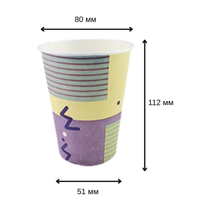 Паперовий стакан з малюнком об'ємом 340 мл — це практичне та універсальне рішення для подачі як гарячих, так і холодних напоїв. Виготовлений з якісного щільного картону, який не деформується під впливом високої температури та не протікає. Ідеально підходить для кави, чаю, какао, соку, лимонаду та інших напоїв.