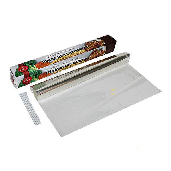 Рукав для запікання – справжня знахідка для винахідливих домогосподарок і гурманів. На відміну від фольги, вона повністю обгортає страву і забезпечує повну герметичність з допомогою спеціальних кліпс.