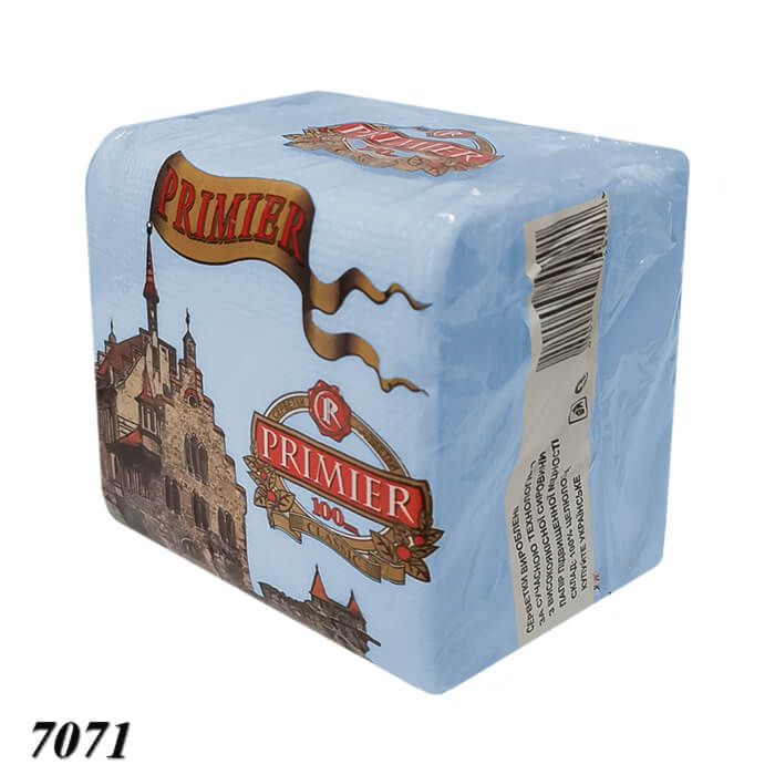 Серветка PRIMIER, 100 шт блакитна — універсальний, одношаровий паперовий виріб, створений для щоденного вживання вдома, в кафе, офісах та на заходах. Ніжна та міцна целюлоза добре вбирає вологу і жир, забезпечуючи практичність і комфорт. Упаковка з 100 штук розміром 24 × 24 см — зручна для сервірування столу, очищення рук або прибирання поверхонь. Економічний та гігієнічний варіант, який легко інтегрується в будь-яке середовище.