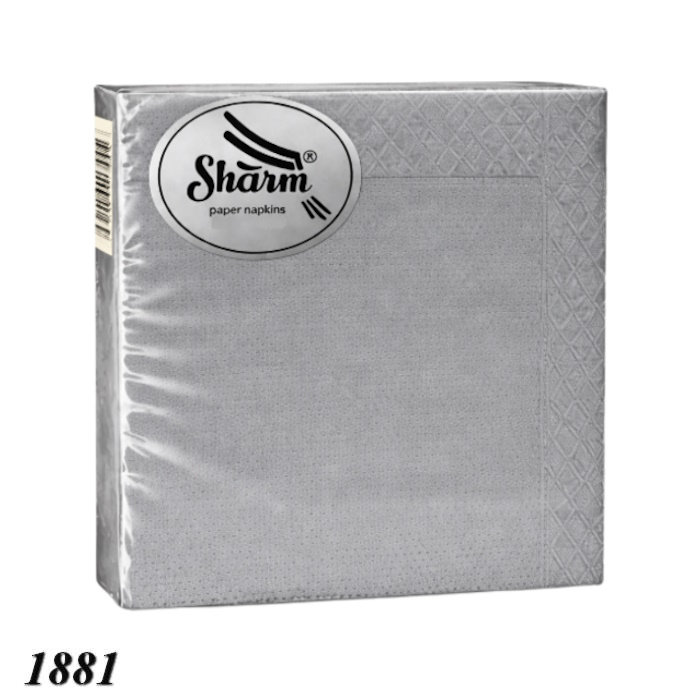 Серветки паперові бренду Sharm, упаковка 20 шт, двошарові, сірого кольору. Ідеально підходять для сервірування столу під час вечірок, тематичних заходів, ресторанних чи домашніх подій. Завдяки двом шарам серветки мають підвищену міцність та здатність вбирати вологу, що робить їх практичними і комфортними у використанні. Колірна глибина сірого створює елегантний контраст і додає вишуканості оформленню столу.