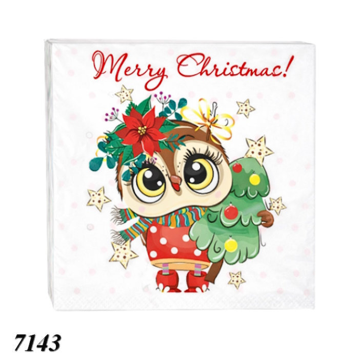 Паперові новорічні серветки — чудове доповнення до святкового столу. Виготовлені з якісного двошарового паперу, вони мають яскравий тематичний дизайн із зимовими візерунками, сніжинками, ялинками, Сантою або іншими святковими мотивами. Ідеально підходять для сімейних застіль, вечірок, кав’ярень, ресторанів або кейтерингу. Можуть використовуватися як елемент декору або для сервірування. Екологічні, одноразові, зручні у використанні.