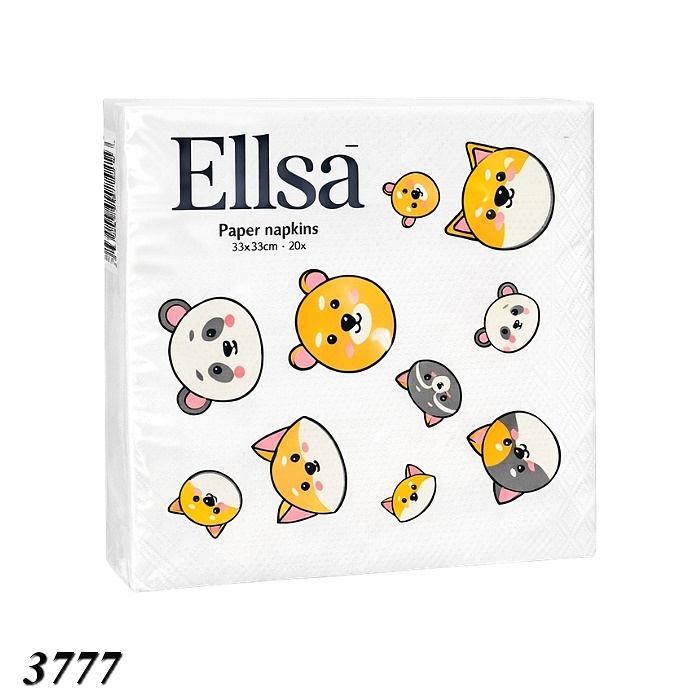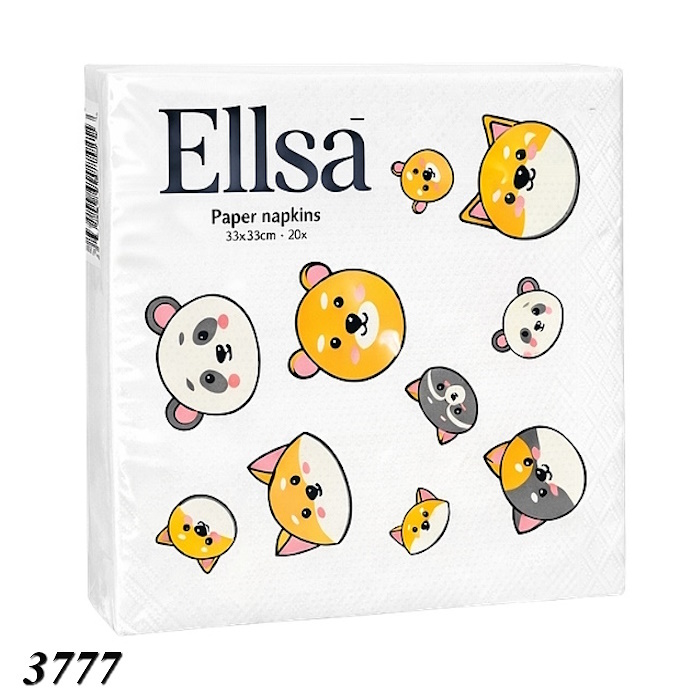 Паперові серветки Ellsa «Тварини» — це яскраві двошарові серветки розміром 33×33 см із милим дитячим принтом (котики та ведмедики). Ідеально підходять для дитячих свят, днів народження, пікніків та щоденного сервірування столу. Серветки виготовлені з якісної целюлози, добре вбирають вологу, не рвуться та зберігають форму під час використання. Упаковка містить 20 серветок із кольоровим друком.