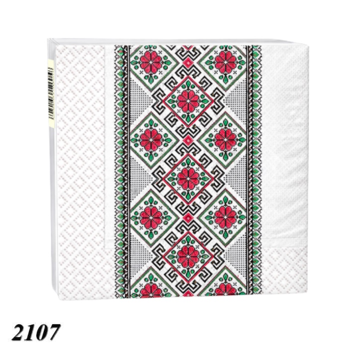 Паперові серветки з кольоровим малюнком розміром 33×33 см, 50 штук у пачці, тришарові. Виготовлені з міцного, гігієнічного паперу з тисненням, яке посилює вбиральність і надає текстурі приємної м’якості. Ідеально підходять для сервірування святкового столу, тематичних заходів або повсякденного використання вдома.