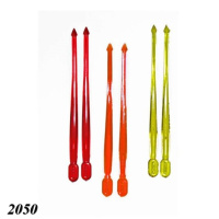 Яскрава одноразова шпажка довжиною 85 мм, виготовлена з міцного харчового пластику та прикрашена декоративним елементом у формі спису. Кількість в упаковці - 1000 різнокольорових штук (жовті, сині, червоні, зелені, оранжеві), що додає святкового акценту до сервірування. Ідеально підходить для закусок, канапе, десертів та прикраси коктейлів чи напоїв на фуршетах, вечірках та пікніках.