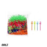Яскрава одноразова шпажка довжиною 85 мм, виготовлена з міцного харчового пластику та прикрашена декоративним елементом у формі шпаги. Кількість в упаковці - 1000 різнокольорових штук (жовті, сині, червоні, зелені, оранжеві), що додає святкового акценту до сервірування. Ідеально підходить для закусок, канапе, десертів та прикраси коктейлів чи напоїв на фуршетах, вечірках та пікніках.