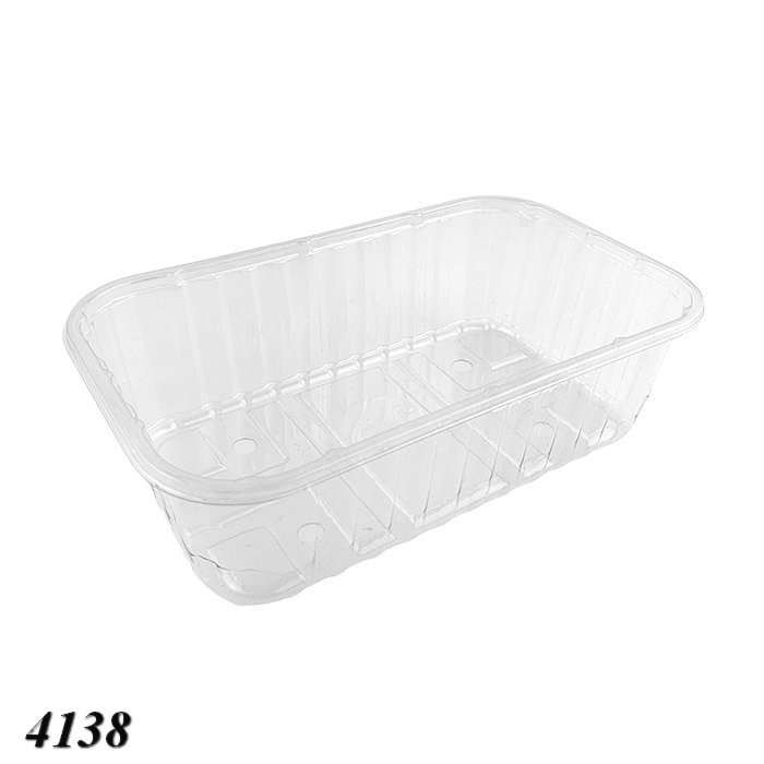 Одноразовий контейнер-фруктовниця 950 мл (0,5 кг), без кришки — легка та зручна тара для фасування і продажу ягід, фруктів, овочів, зелені та дрібної випічки. Виготовлений із прозорого харчового PET-пластику, що дозволяє покупцю бачити вміст. Контейнер добре підходить для викладки товару в супермаркетах, на ринках і в магазинах. Можливе використання з харчовою плівкою або окремо підібраною кришкою.