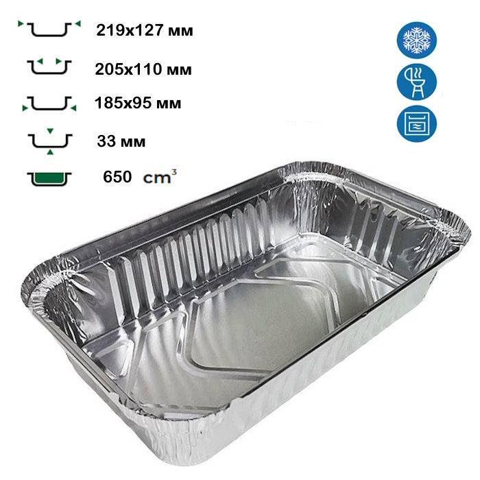 Алюмінієвий контейнер 350 мл — це зручна одноразова тара для приготування, зберігання, запікання та транспортування гарячих і холодних страв. Контейнер виготовлений з харчової алюмінієвої фольги, яка стійка до високих температур, не змінює смак продуктів і підходить для духовок, грилів та морозильних камер. Ідеально підходить для HoReCa, кейтерингу, доставки їжі, а також побутового використання.