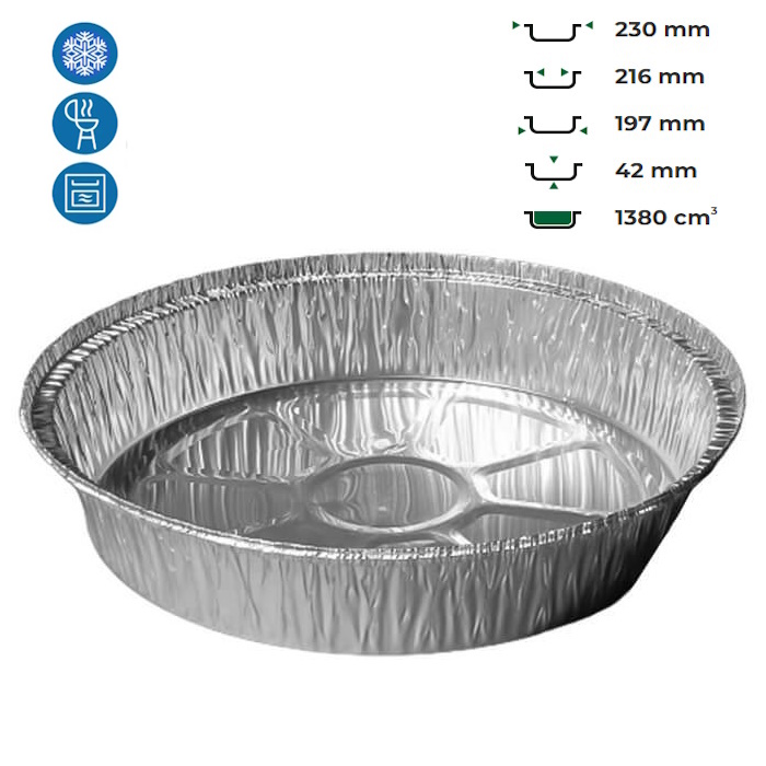 Алюмінієвий контейнер 1380 мл — це зручна одноразова тара для приготування, зберігання, запікання та транспортування гарячих і холодних страв. Контейнер виготовлений з харчової алюмінієвої фольги, яка стійка до високих температур, не змінює смак продуктів і підходить для духовок, грилів та морозильних камер. Ідеально підходить для HoReCa, кейтерингу, доставки їжі, а також побутового використання.
