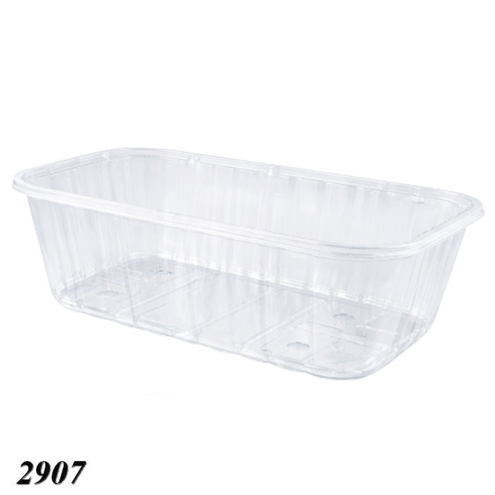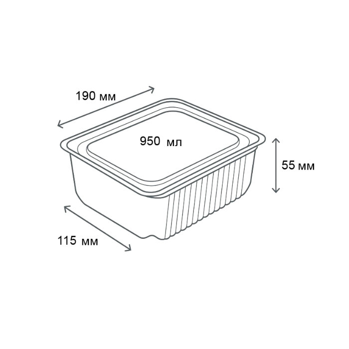Одноразовий контейнер-фруктовниця 950 мл (0,5 кг), без кришки — легка та зручна тара для фасування і продажу ягід, фруктів, овочів, зелені та дрібної випічки. Виготовлений із прозорого харчового PET-пластику, що дозволяє покупцю бачити вміст. Контейнер добре підходить для викладки товару в супермаркетах, на ринках і в магазинах. Можливе використання з харчовою плівкою або окремо підібраною кришкою.