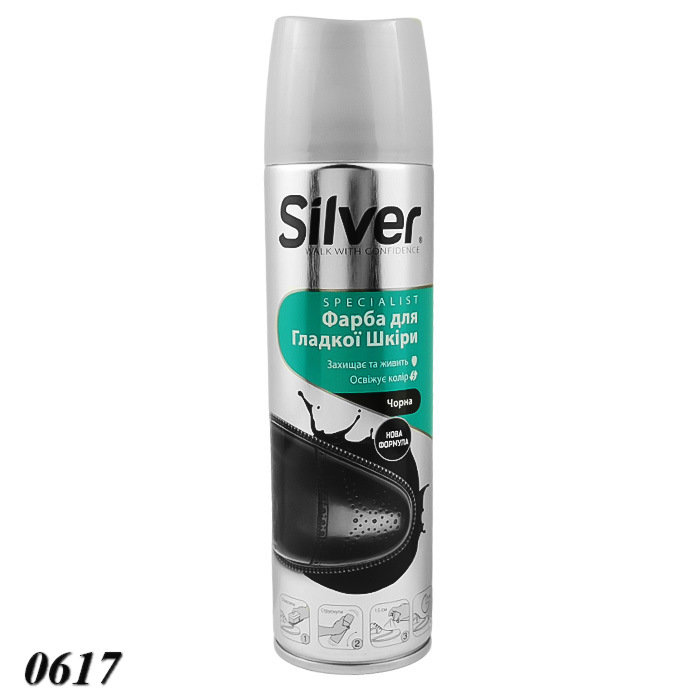 Аэрозольная краска Silver предназначена для обновления и покраски обуви из натуральной или искусственной гладкой кожи. Средство быстро восстанавливает утраченный цвет, маскирует царапины и потертости, не трескается после высыхания и не загрязняет одежду. Имеет удобный распылитель, обеспечивающий равномерное покрытие без потеков. Идеально подходит для ежедневного ухода или обновления внешнего вида обуви, сумок, курток и других изделий из кожи.